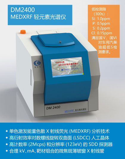 完全依據(jù)ASTM D 7220-12的DM2400S/Cl型MEDXRF微量測硫氯儀采用單色激發(fā)技術(shù),能快速、準(zhǔn)確、精確地分析燃料中的超低S。是實(shí)驗(yàn)室和工廠進(jìn)行燃料中的超低S分析的完美 ...更多